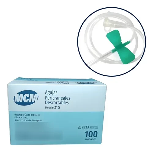Las Agujas Pericraneales Descartables MCM son la opción ideal para procedimientos médicos que requieren precisión y seguridad. Cada aguja es estéril, atóxica y apirógena, garantizando un uso seguro y confiable. Están esterilizadas mediante óxido de etileno, lo que asegura la eliminación de cualquier contaminante. Diseñadas para un solo uso, estas agujas minimizan el riesgo de infecciones y complicaciones. Con un número de habilitación de ANMAT 1440-243, cumplen con los estándares de calidad y seguridad exigidos.